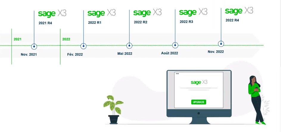 Tout d’abord, rappelons que les anciennes versions de Sage X3, de la V6 à la V11, sont soumises à un cycle de vie de 18 mois, avec un périmètre de maintenance qui s’amenuise au fil des mois et des années qui suivent le lancement du produit. Cette politique basée sur le lancement de versions majeures tous les 18 mois, n’est plus en vigueur depuis la sortie de Sage X3 V12 en janvier 2019.