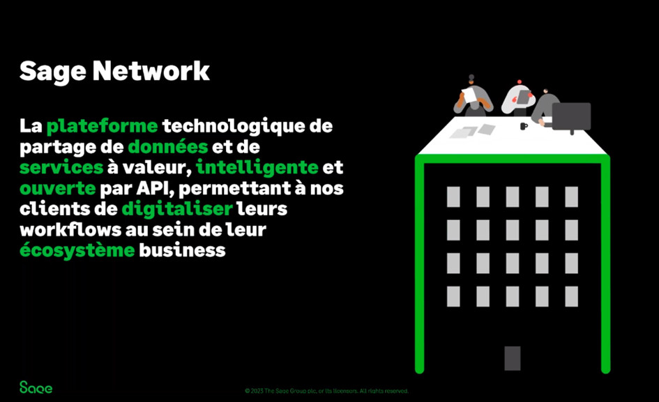 - Le troisième niveau de Sage Network proposera une gamme étendue de services, y compris l’intégration des e-mails, le traitement des factures, le support des solutions de paiement, la création de tableaux de bord intelligents et l’intelligence artificielle (Sage AI) pour des services personnalisés.