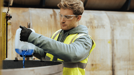 Illustration Sage X3 un homme travaille dans un entrepôt et verse un sac dans un contenant.